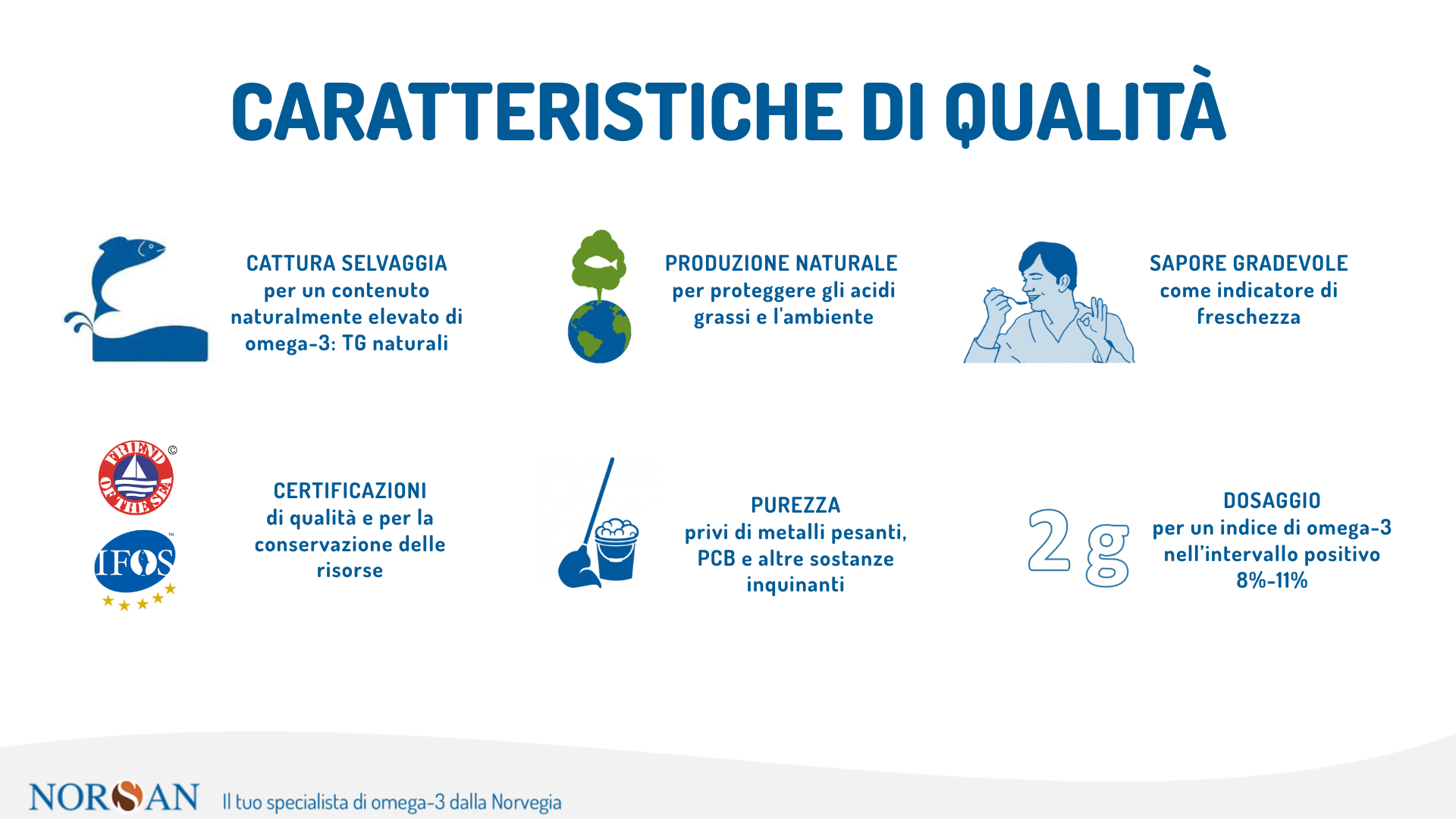 Noi abbiamo scelto un partner di eccellenza, Norsan un’azienda norvegese specializzata da oltre dieci anni negli acidi grassi omega-3.