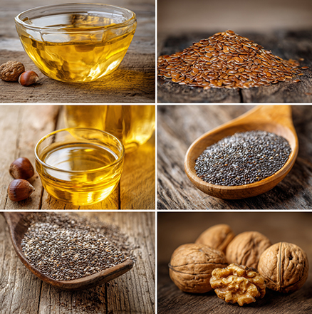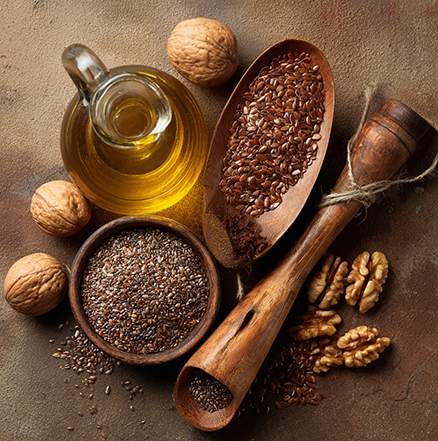 ALA, presente in semi di lino, semi di chia, noci e oli vegetali
